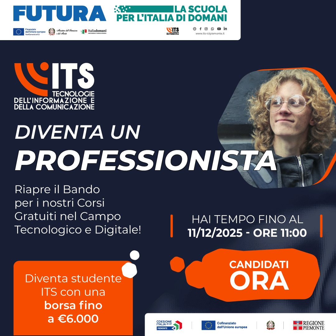 La Fondazione ITS Academy ICT Piemonte apre ufficialmente la seconda istruttoria per il Bando di Selezione Studenti dedicata ai percorsi del biennio formativo 2025/2027.