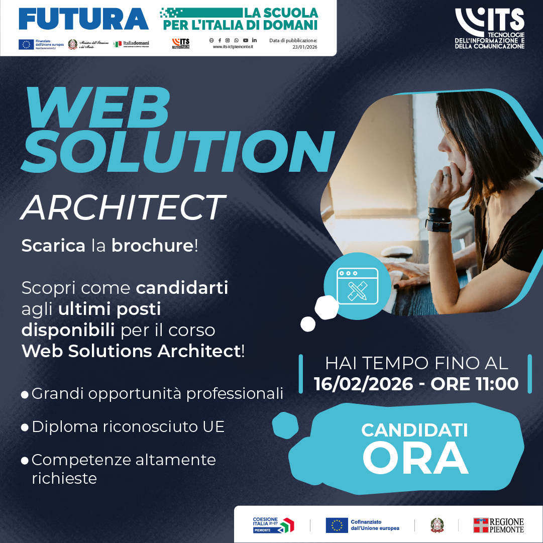 La Fondazione ITS Academy ICT Piemonte apre ufficialmente la seconda istruttoria per il Bando di Selezione Studenti dedicata ai percorsi del biennio formativo 2025/2027.