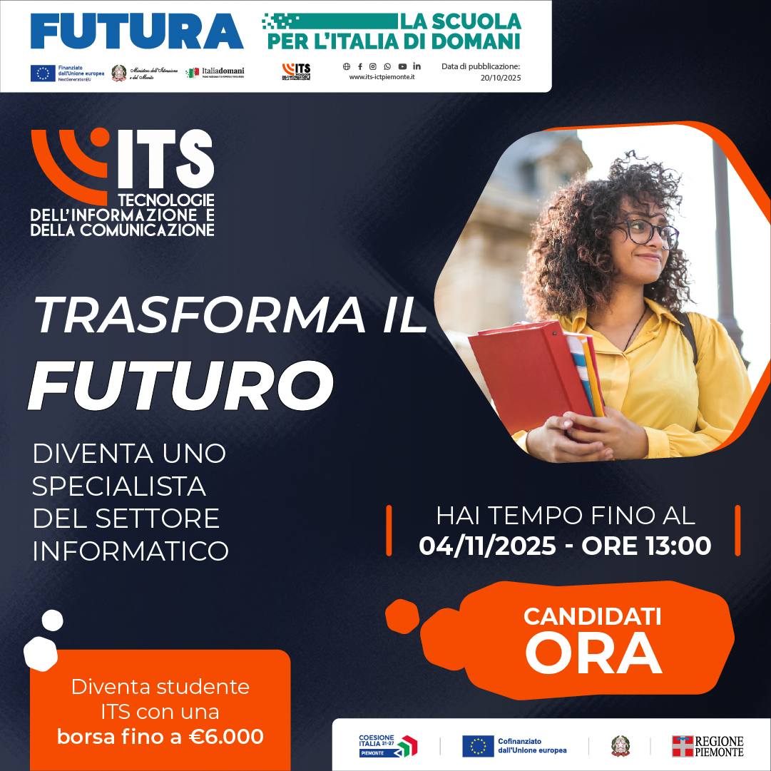 La Fondazione ITS Academy ICT Piemonte apre ufficialmente la seconda istruttoria per il Bando di Selezione Studenti dedicata ai percorsi del biennio formativo 2025/2027.