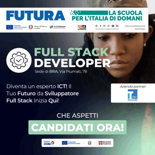 Scopri il corso di Full Stack Developer della Fondazione ITS ICT Piemonte! Diventa uno specialista Full Stack Developer imparando da professionisti del settore i metodi e le tecnologie per diventare un esperto sviluppatore Front End e Back End!