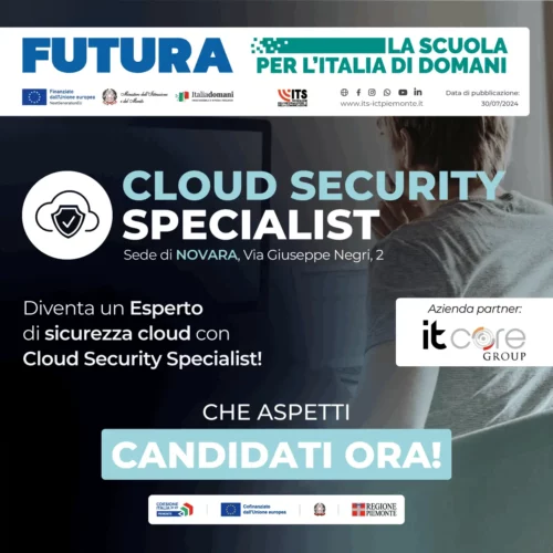 Scopri il corso di Cloud Security Specialist della Fondazione ITS ICT Piemonte! Diventa uno specialista nella sicurezza informatica in ambiente cloud, imparando da professionisti del settore i metodi e le tecnologie per proteggere i dati e le infrastrutture aziendali.