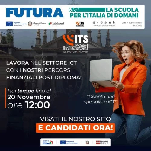 É arrivato il momento di candidarsi al Bando di Selezione Studenti della Fondazione ITS ICT Piemonte! Che aspetti a scoprire i nuovi percorsi formativi della Fondazione per il biennio formativo 2024/2026!